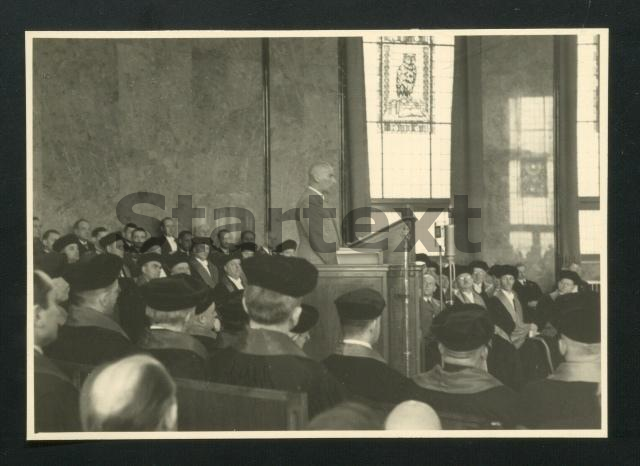1 - Rede von Rektor Otto Mangold am Pult in der Aula - 1940
